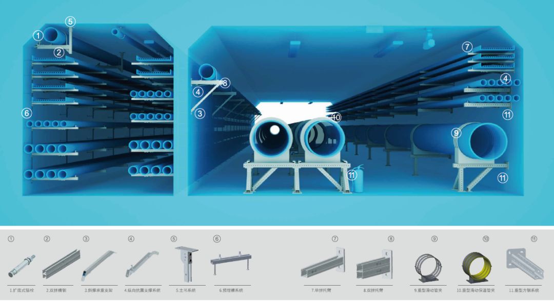 此次交流大會現(xiàn)場,優(yōu)力可科技制作的綜合管廊展架模型,生動而直接地展示了綜合支吊架存在于城市地下的安裝形態(tài),多角度呈現(xiàn)了產(chǎn)品創(chuàng)新理念,為與會來賓朋友們帶來了一場綜合管廊一體化解決方案的視覺盛宴。