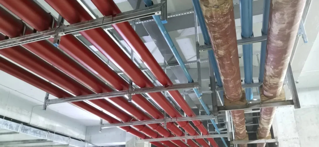 裝配式支吊架把控各專業(yè)空間布局,支架布置合理,空間不雜亂。整體效果整齊美觀。無論是橫桿還是管夾,均可以實現(xiàn)沿槽鋼方向的任意調(diào)節(jié),并且方便后期管道調(diào)整及擴(kuò)容。